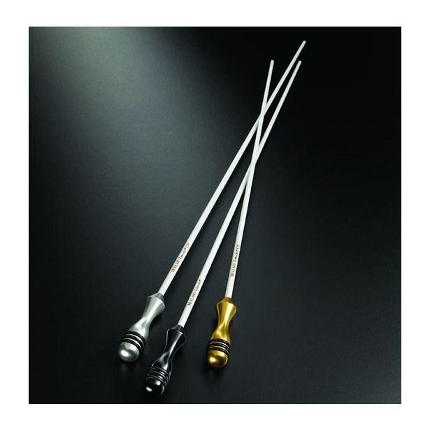The Lancio batons have a bold appearance and an equally bold feel. The handles are turned from aluminum alloy, then hardened in a process called anodizing. While the overall weight of the Lancio baton is greater than our wood batons, the majority of the mass is located in the handle, hence in your fingers. This mass provides a damping action to the movement of the baton that defies description. You simply have to feel it! All Lancio Batons are fitted with gorgeous pearlescent white carbon fiber shafts.