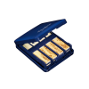 An elegant blue case designed to hold reeds.